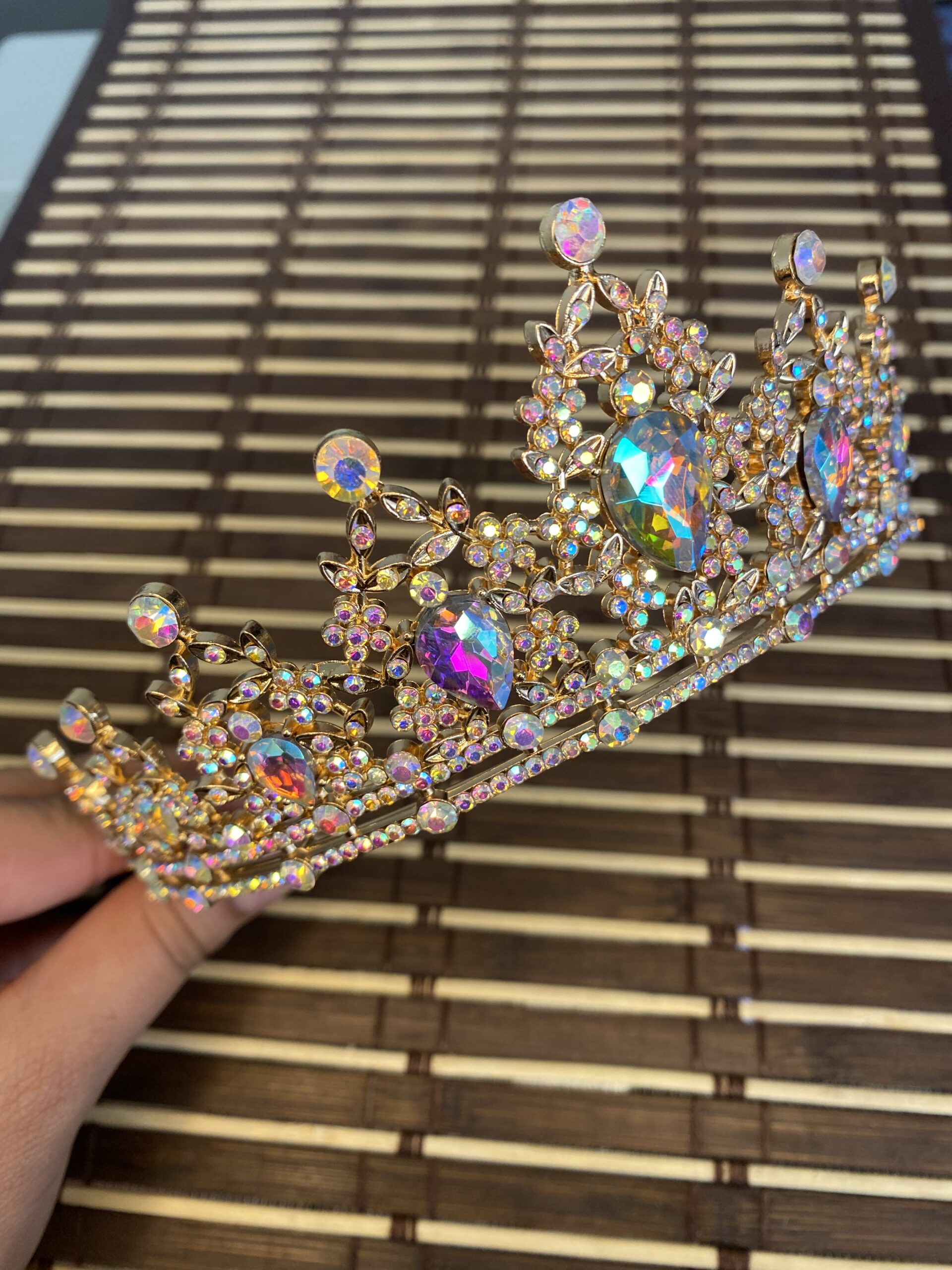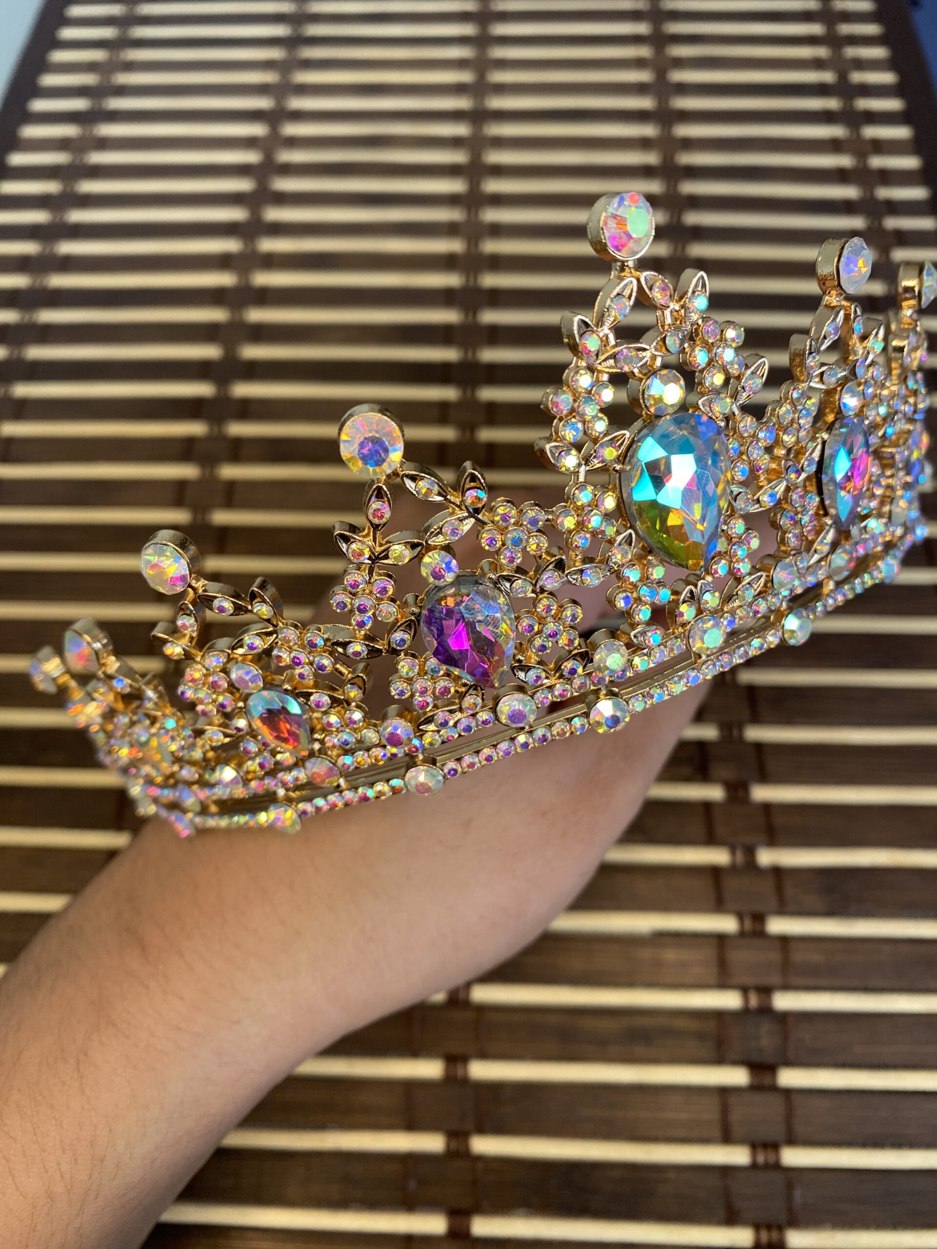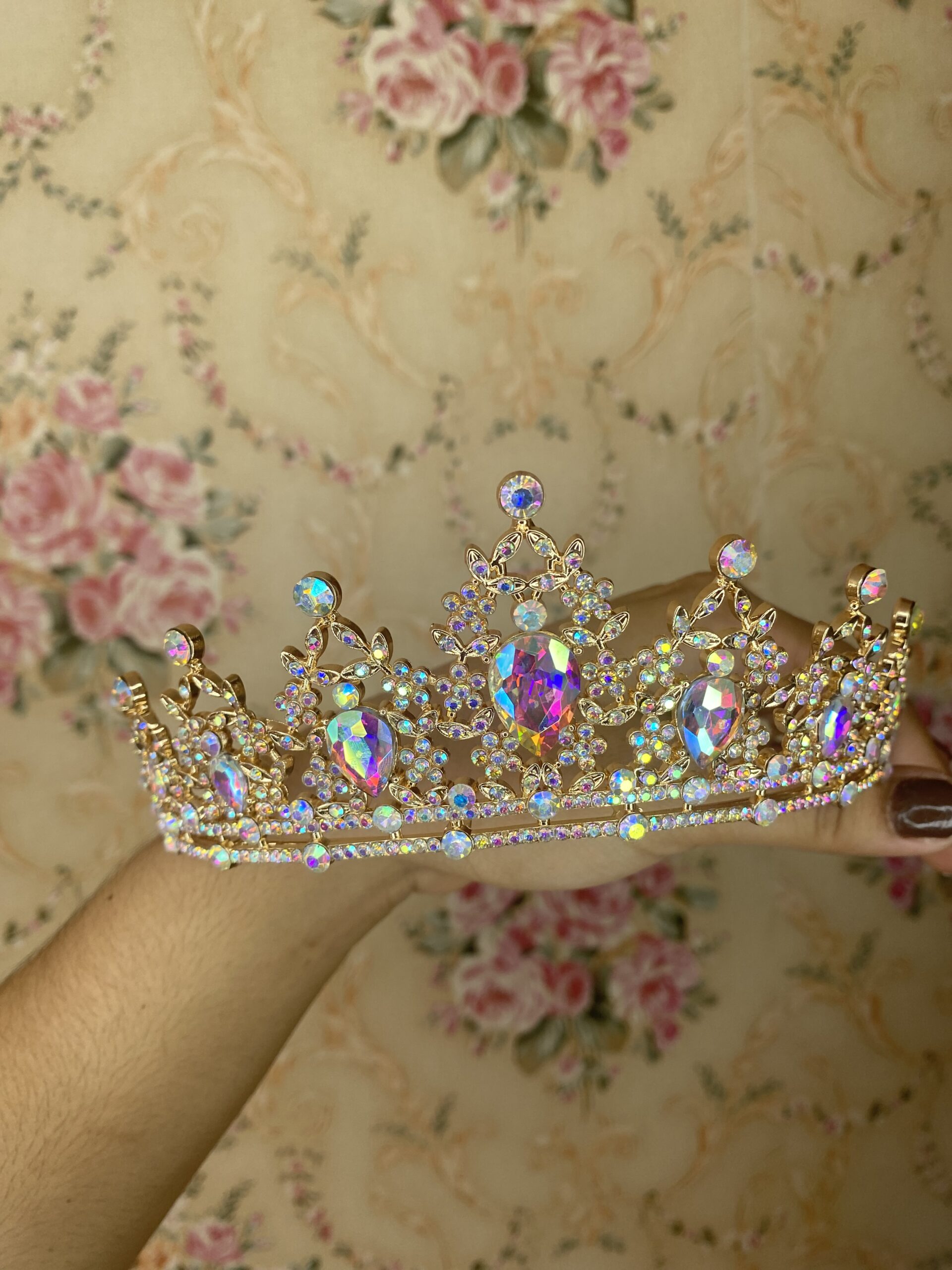 ¡Sumérgete en el mágico resplandor de nuestra deslumbrante tiara tornasol! Este accesorio encantador es un festín para los ojos, capturando la luz y transformándola en una paleta de tonos tornasol que dan vida a cualquier ocasión especial.