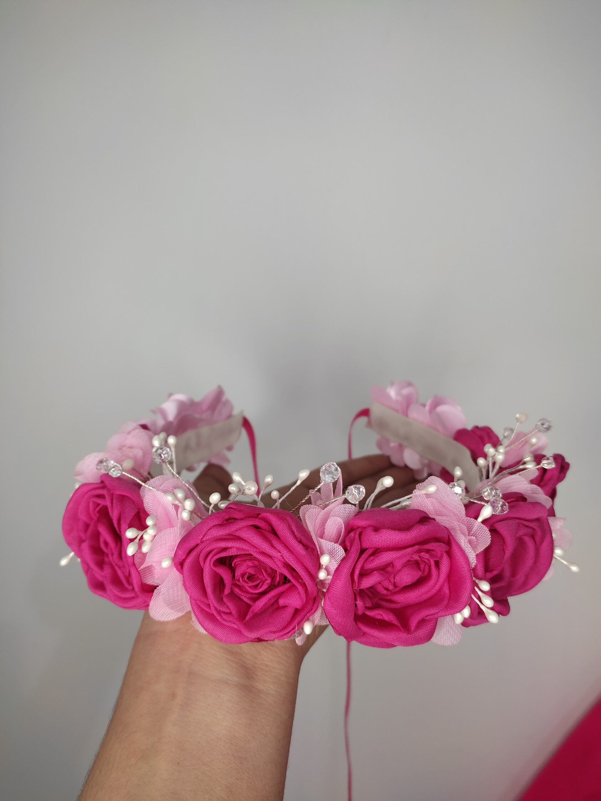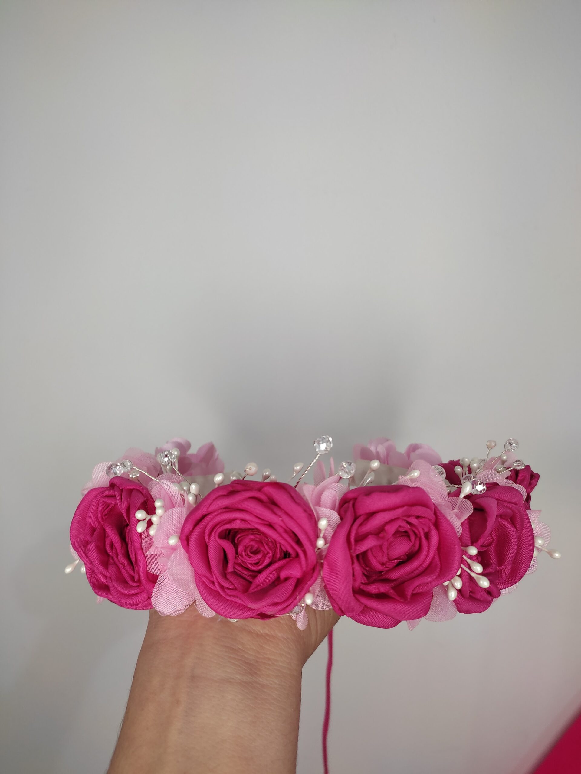 Transforma a tu pequeña en la princesa de su propio cuento de hadas con nuestra tiara de flores rosada con fucsia. Con detalles delicados y encantadores, esta tiara añade un toque de magia y dulzura a cualquier ocasión especial. Perfecta para las pequeñas, esta tiara floral es el accesorio ideal para coronar su día con estilo y encanto.