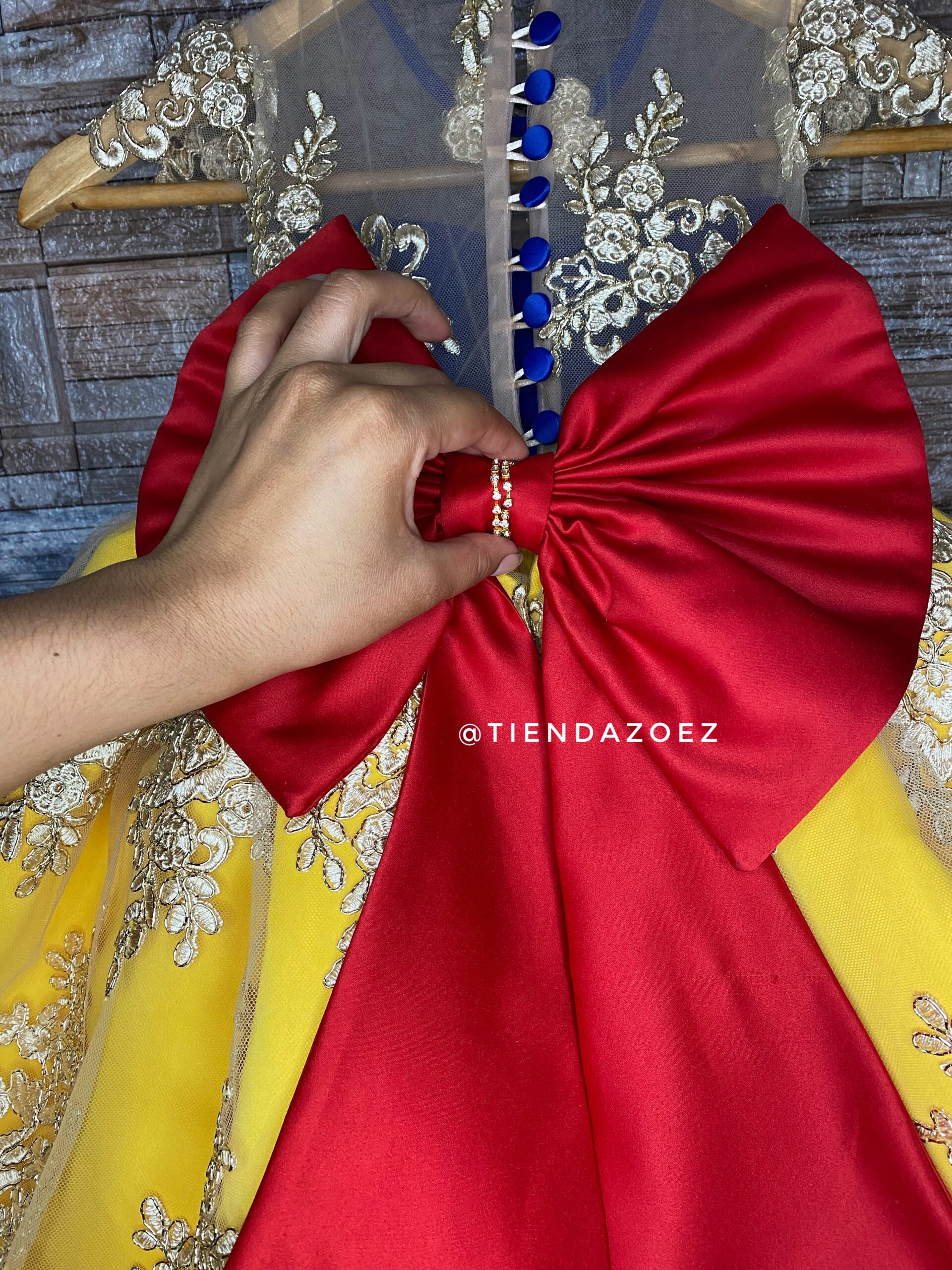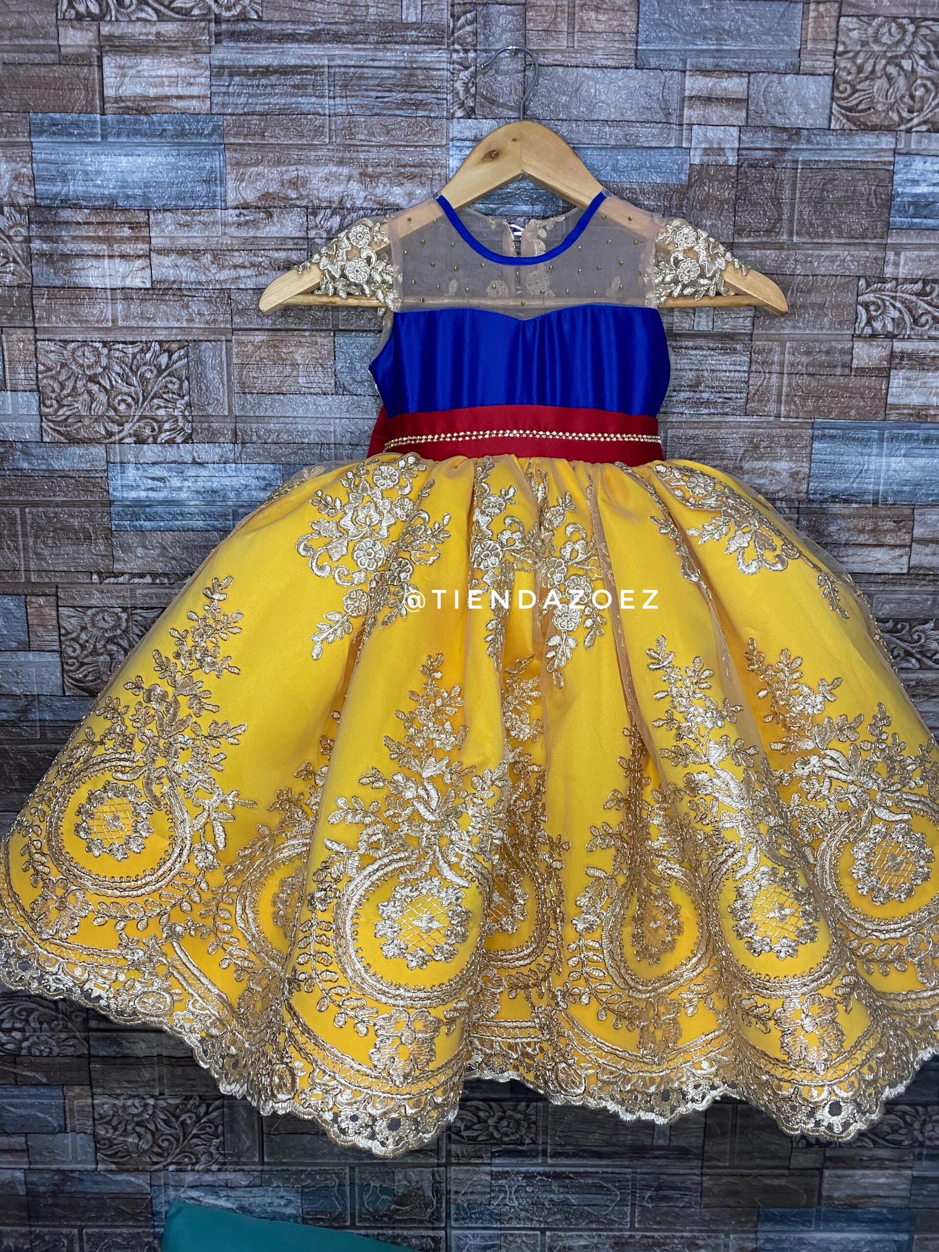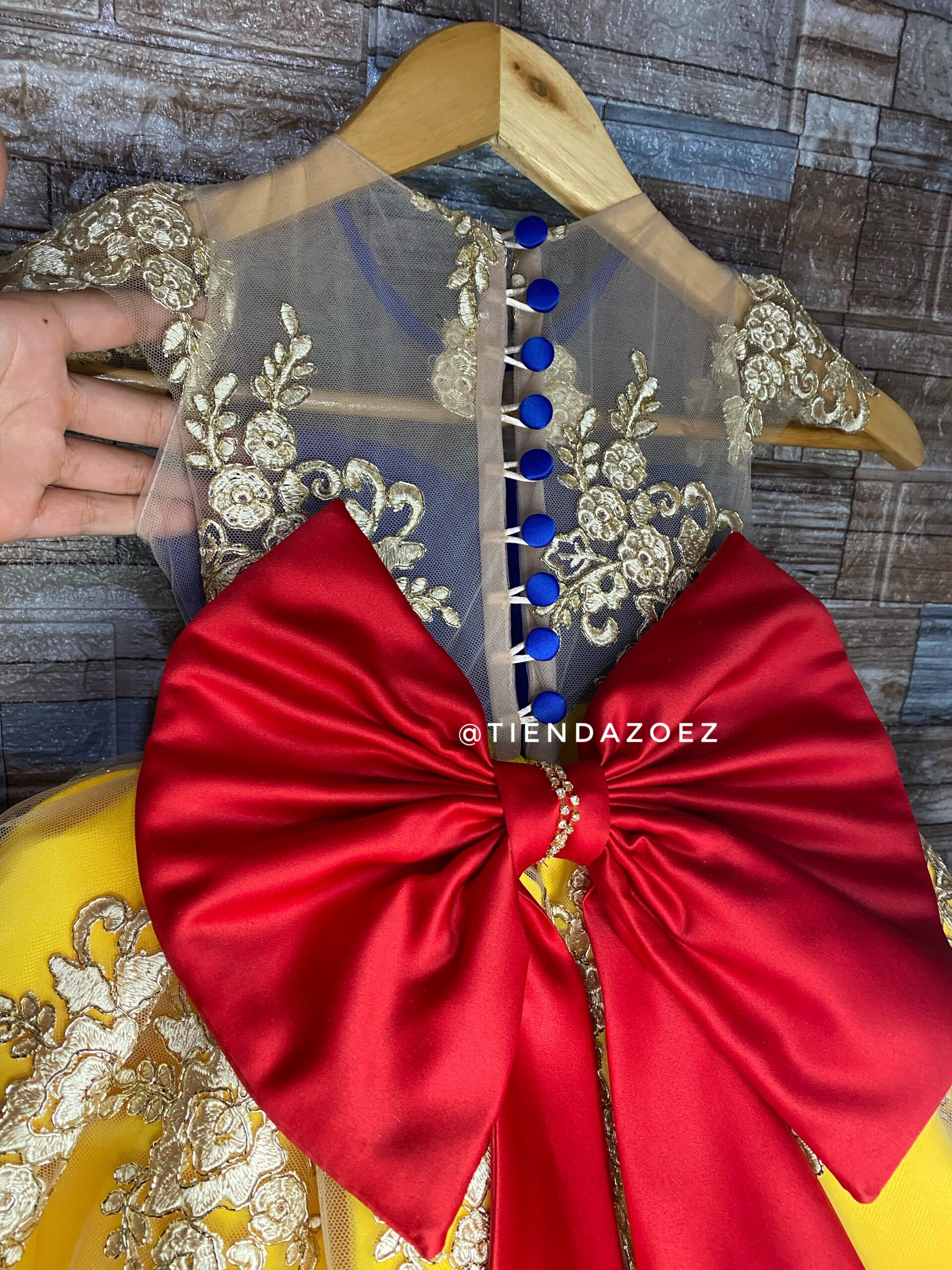 Este encantador vestido para niña, inspirado en la temática de Blanca Nieves, evoca la magia del cuento de hadas con un toque de sofisticación. El diseño destaca por sus detalles de encaje, que añaden un toque romántico y atemporal. La parte superior del vestido presenta un exquisito encaje que aporta delicadeza y elegancia, recordando la pureza asociada con la historia de Blanca Nieves.  La falda, diseñada con fluidez y gracia, complementa la temática con su caída suave. El color elegido refleja la inocencia de la protagonista del cuento, mientras que el encaje realza la belleza de la prenda, haciendo que cada niña que lo lleve se sienta como una princesa.