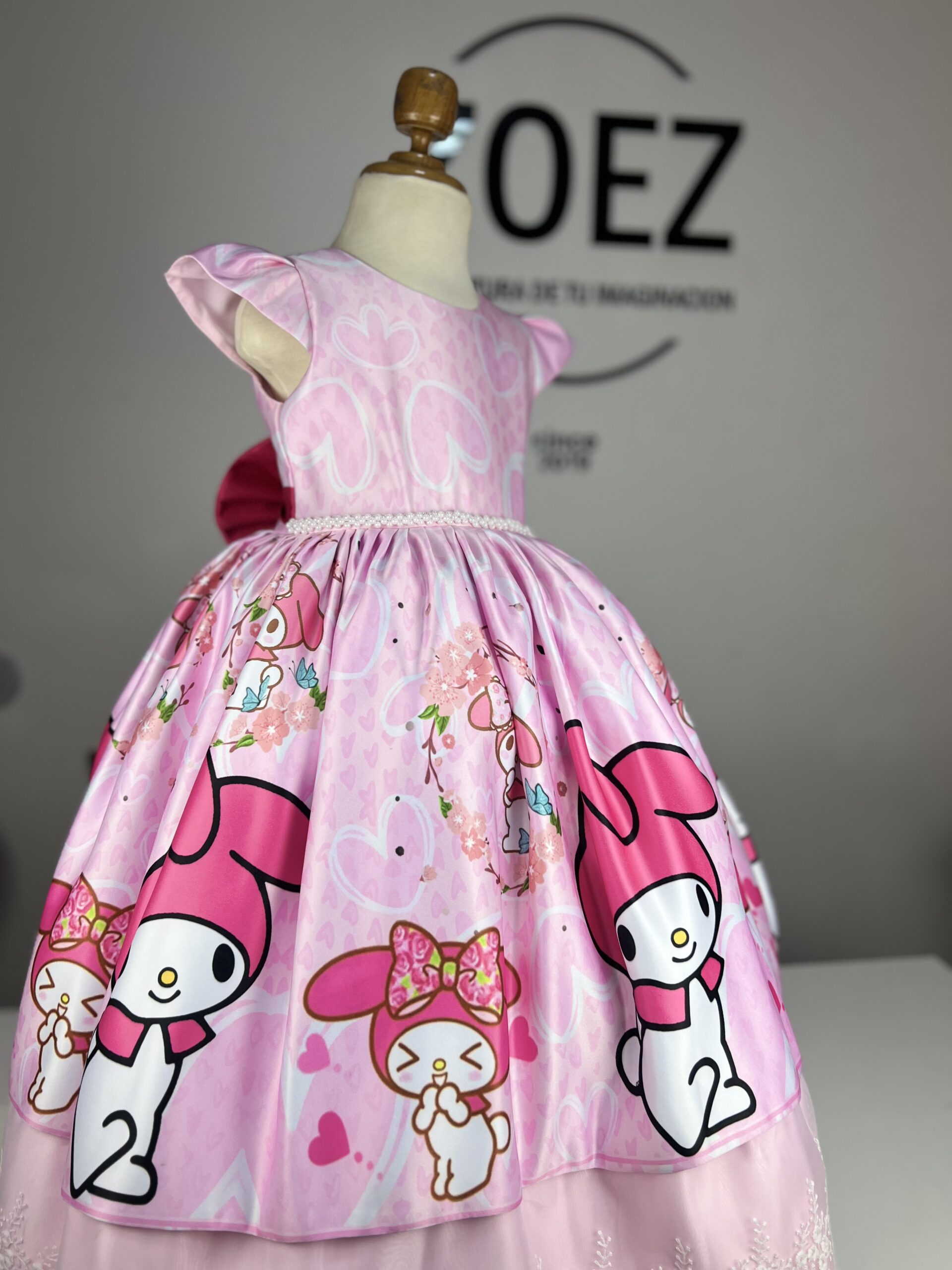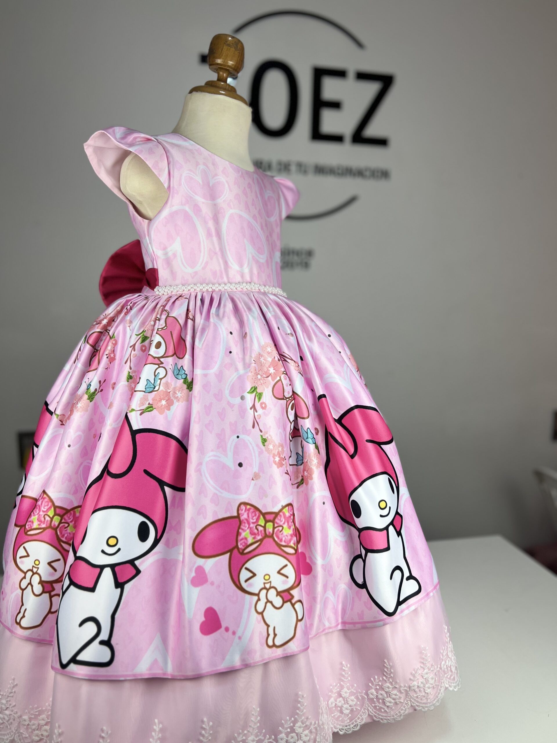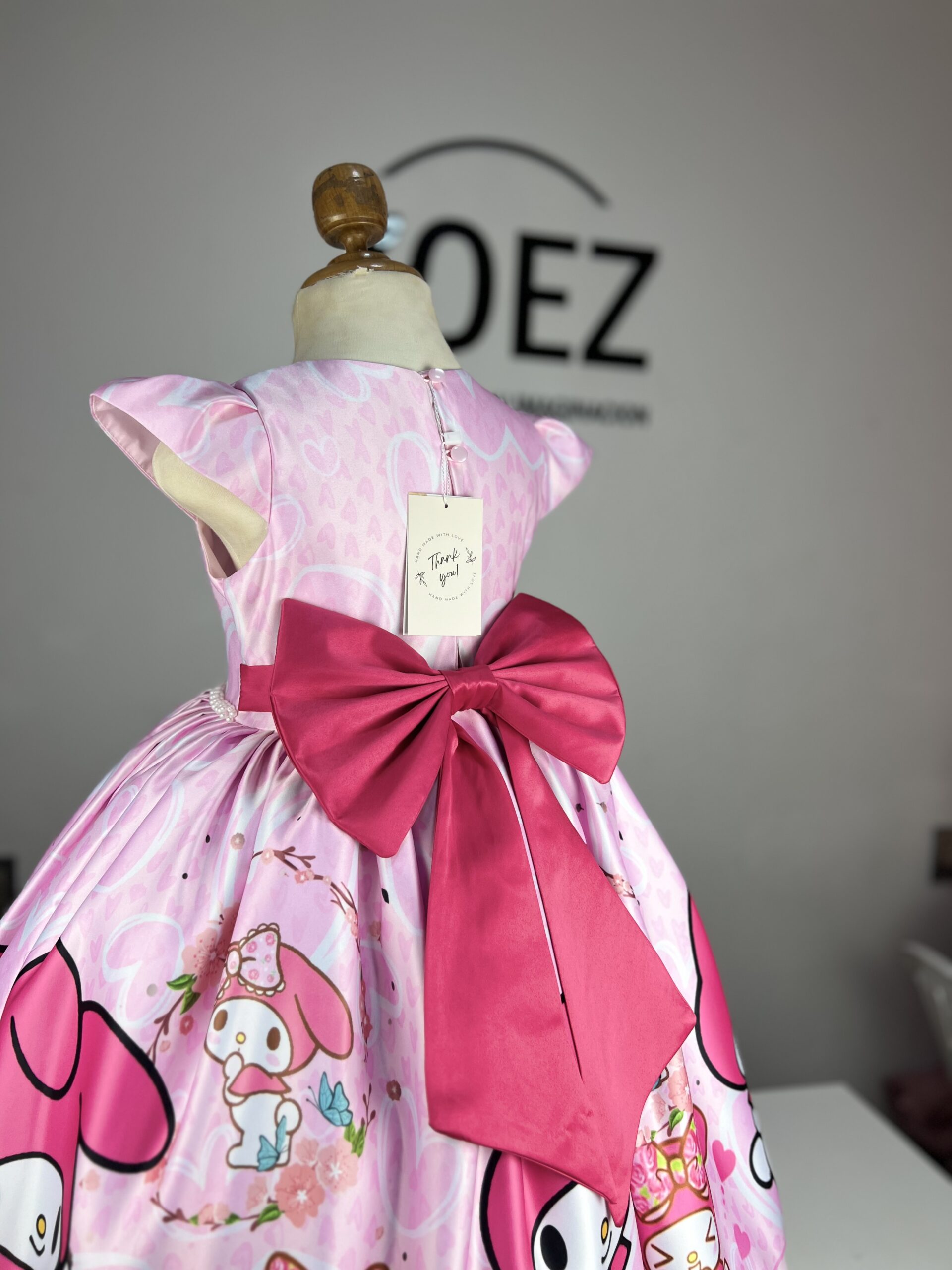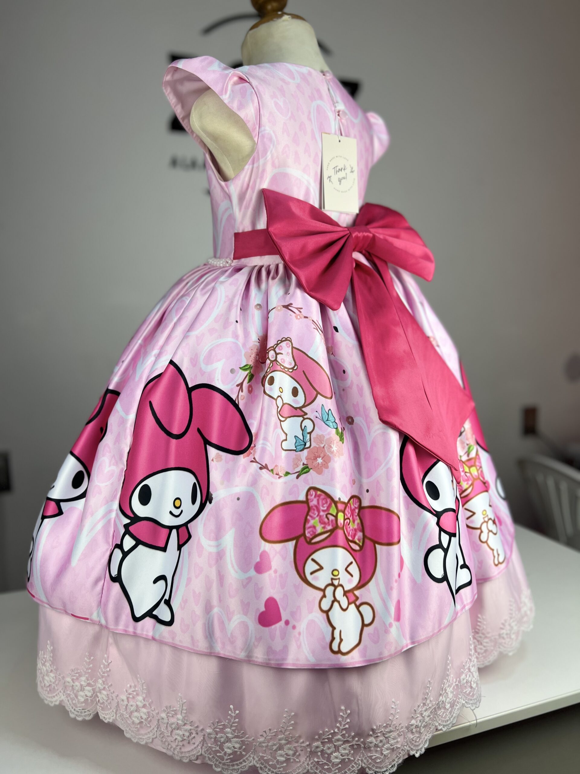 ¡Descubre la magia de My Melody de Hello Kitty con nuestro adorable vestido para niñas! Con el rostro tierno de My Melody en podesua sublimado, este vestido rosa fusiona la diversión y la elegancia. Los volantes añaden un toque encantador, mientras que el lazo en la espalda agrega un toque de gracia. Perfecto para ocasiones especiales, fiestas de cumpleaños o simplemente para hacer que cada día sea un poco más mágico.